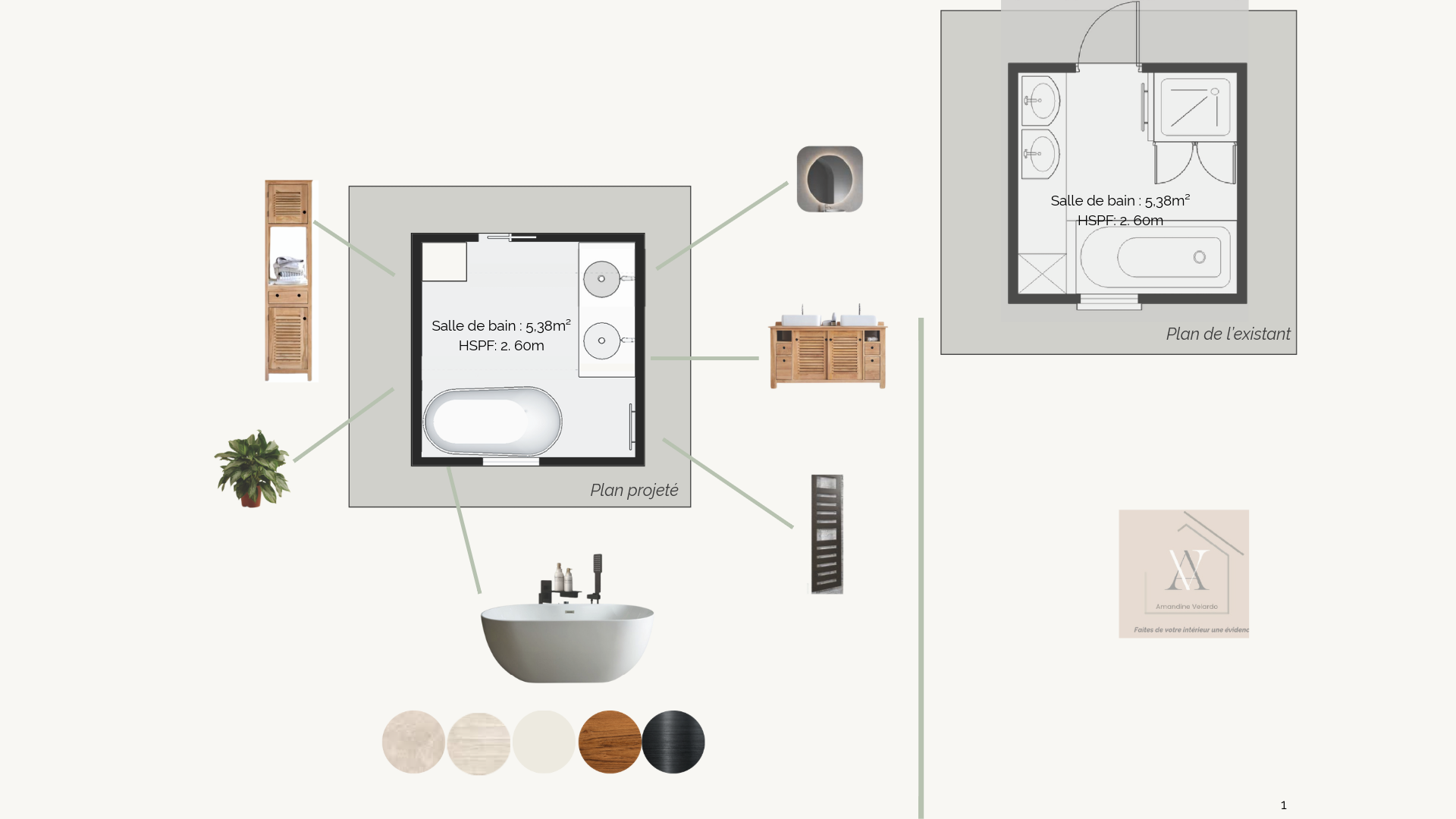 Ce projet part d’une salle de bain existante de 5,38m², dotée à