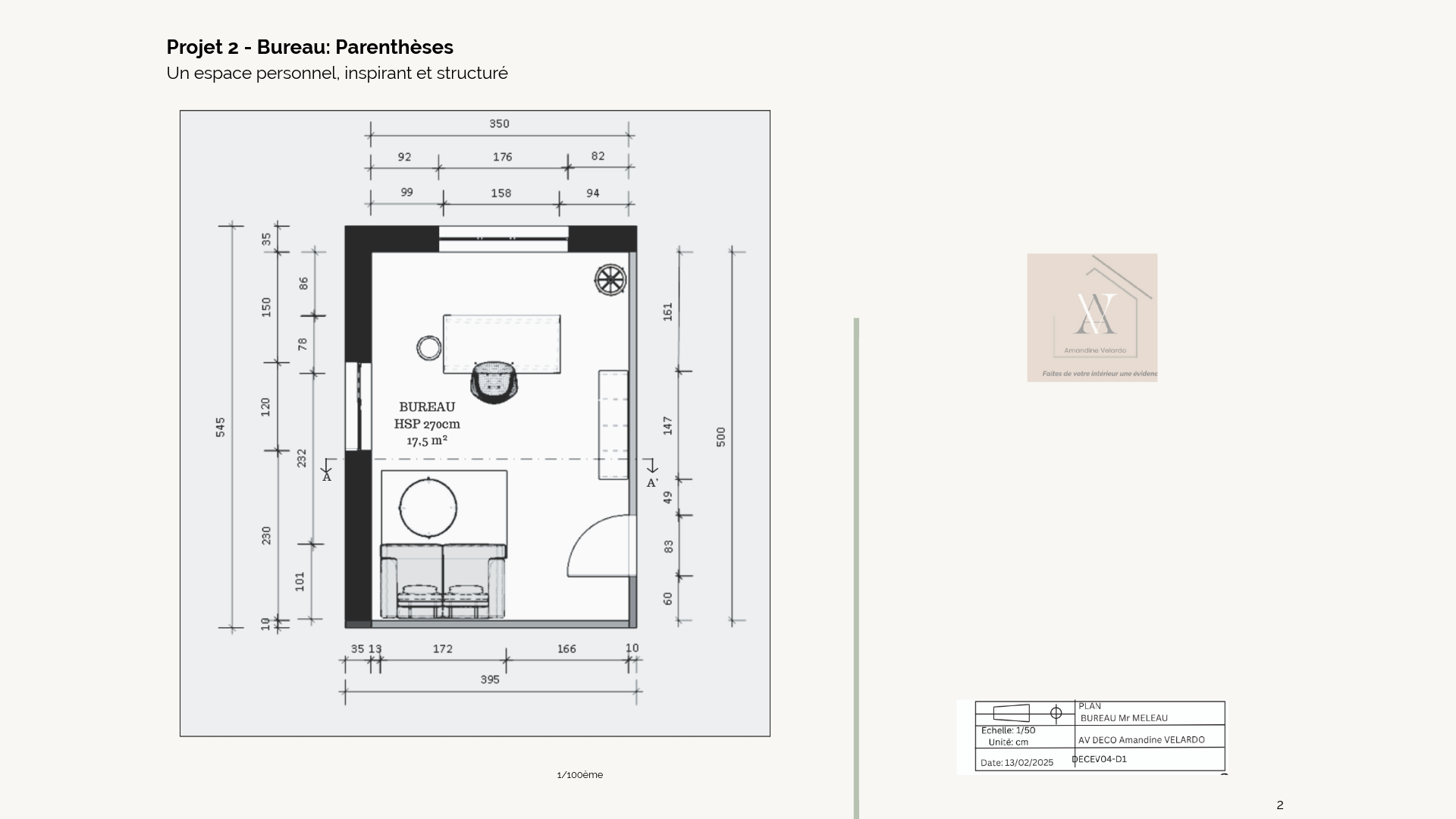 Ce bureau de 17,50m² (HSP 2;70m) a été