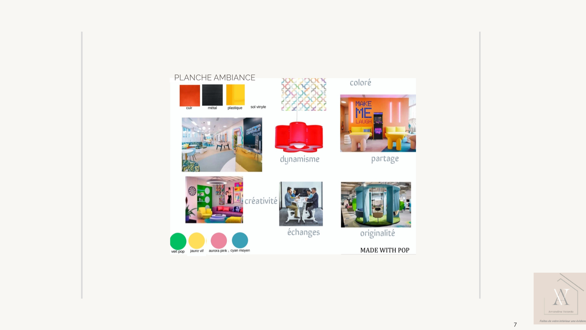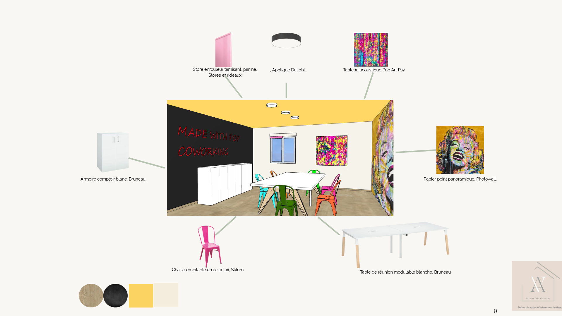 Mots-clés : coworking – dynamique collaboratif – coloré – modulable – ludique – ergonomie – ambiance pop
